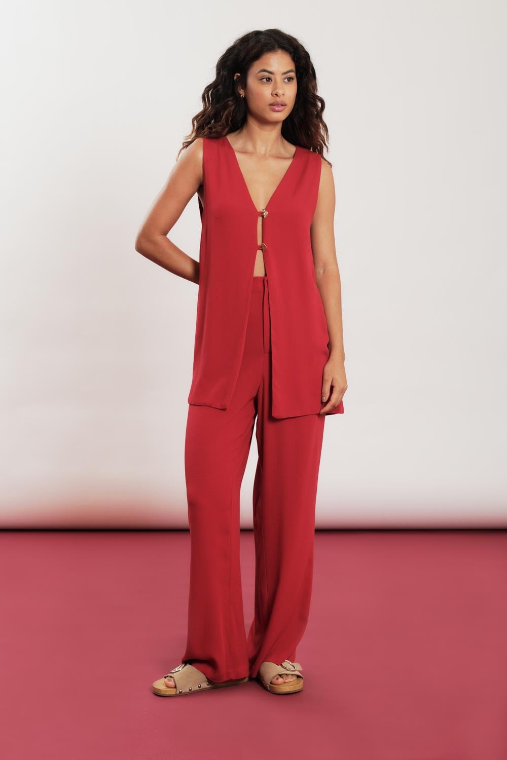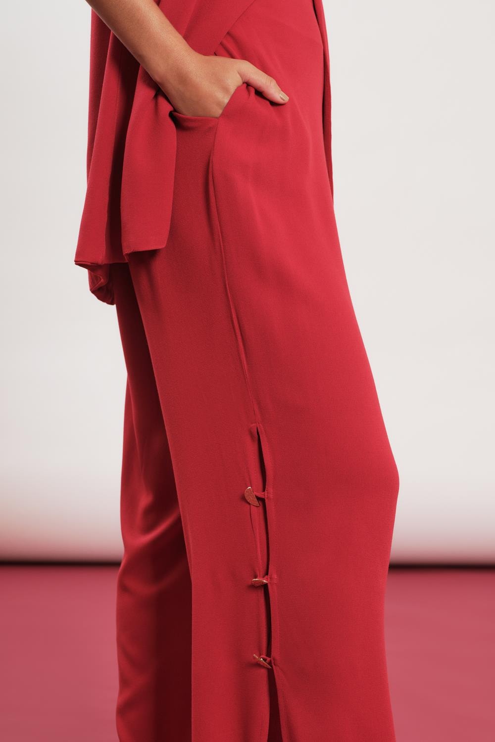 Calca Alfaiataria Fenda Botoes Liso