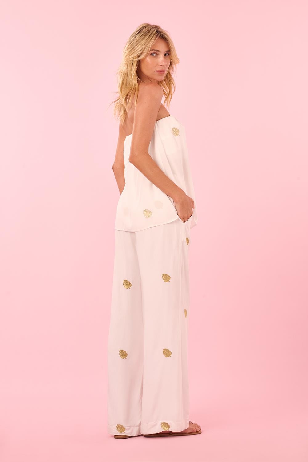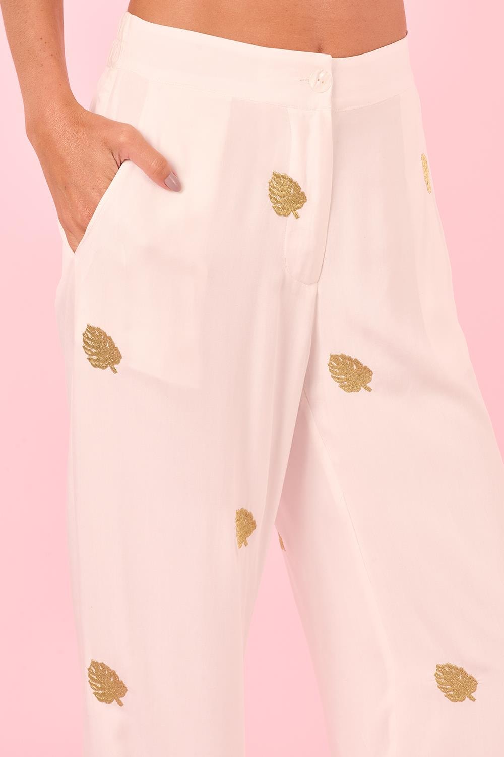 Calca Reta Botao Bordado Adao