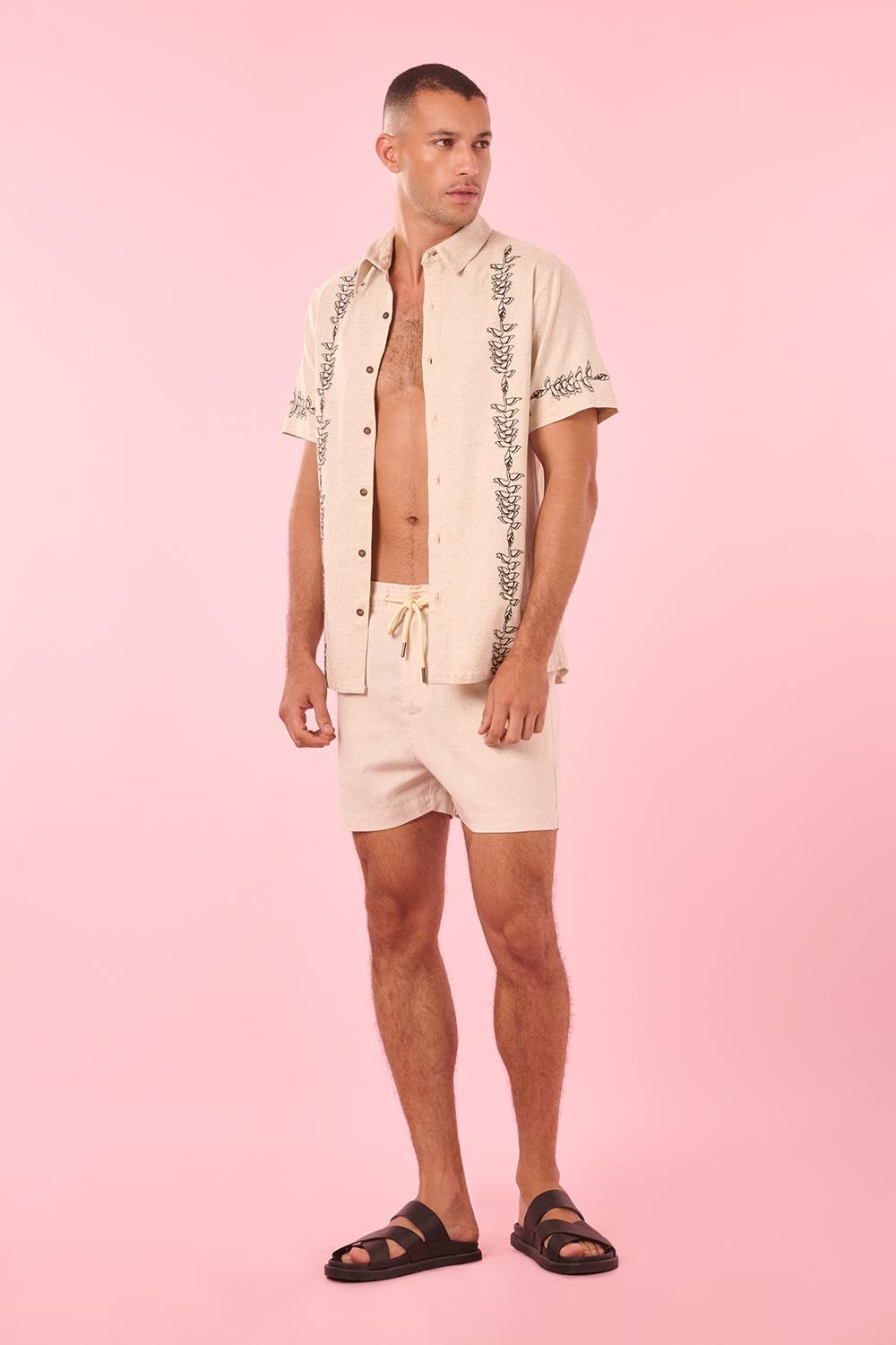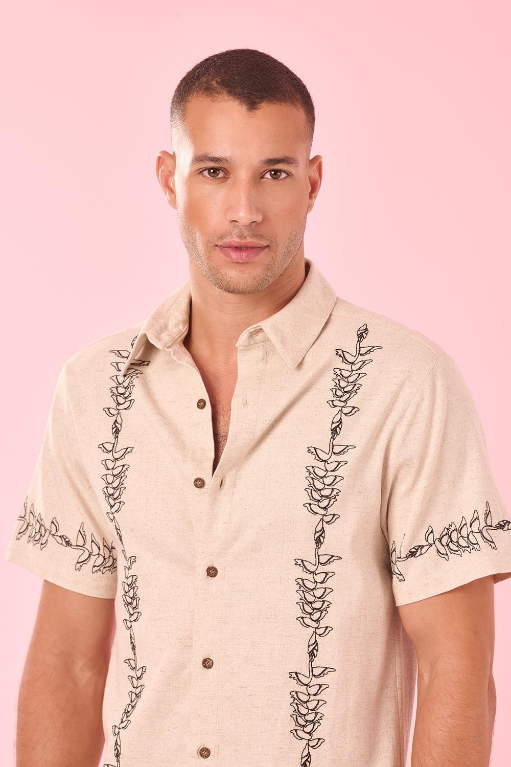 Camisa Florida Bordado Heliconia Liso