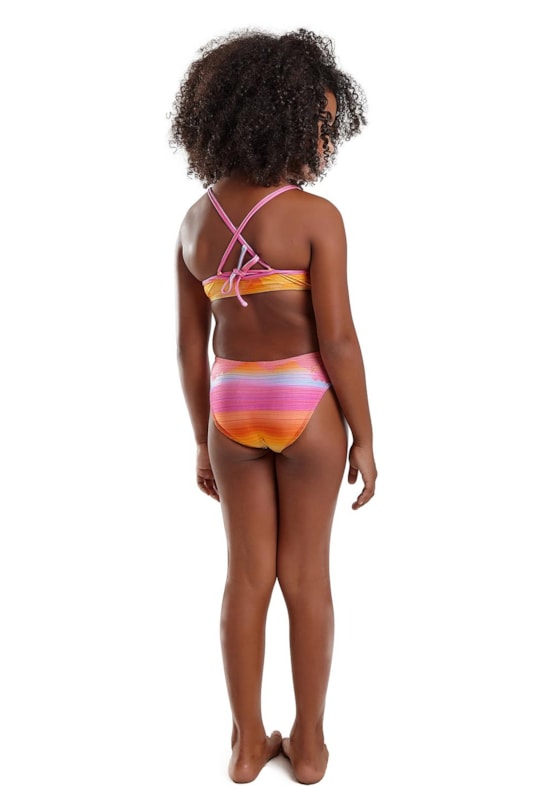 MAIO PETECA SUNSET INFANTIL com um babado no busto, amarração nas costas, estampa corrida e sua lateral com detalhe para dar mais frescor, traz todo conforto para as crianças se divertirem. Para fazer bonito por aí vale lembrar que nossa Lycra possui fator de proteção UV50+. A estampa Sunset é um convite para ver o pôr do sol em tardes quentes de verão. Um retrato pintado com matizes de rosa, laranja e dourado.