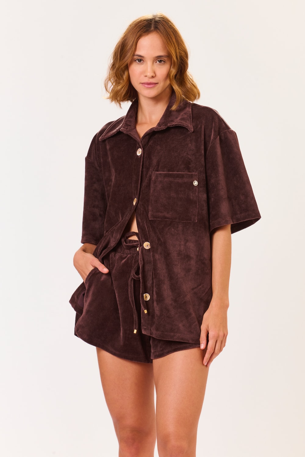 Short Curto Veludo Liso