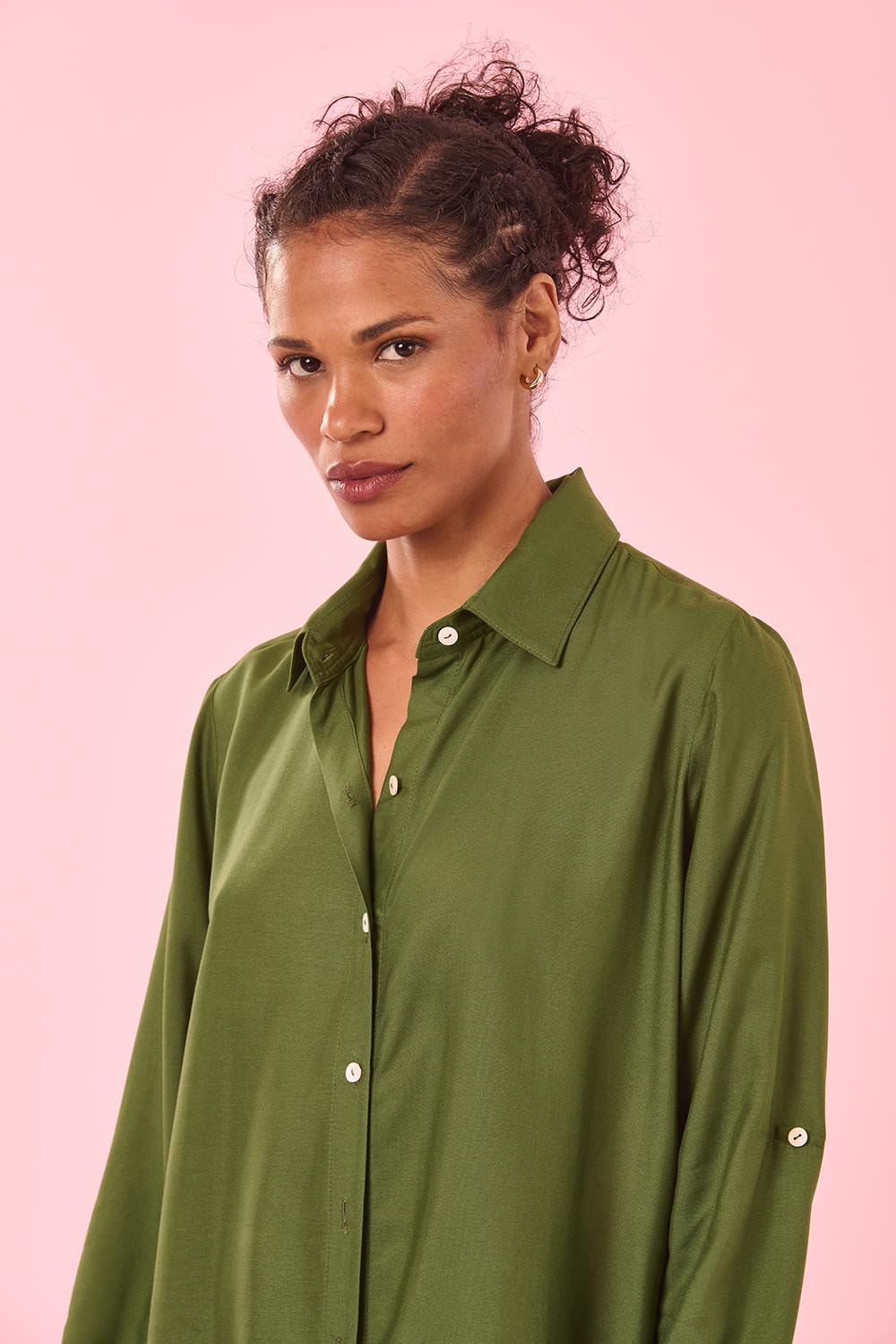 Vestido Chemise Manga Longa New Liso