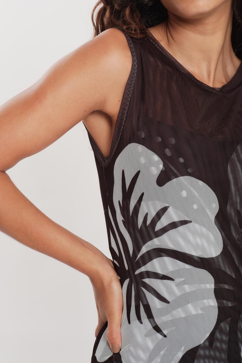 Vestido Tule Loc Maxi Hibisco