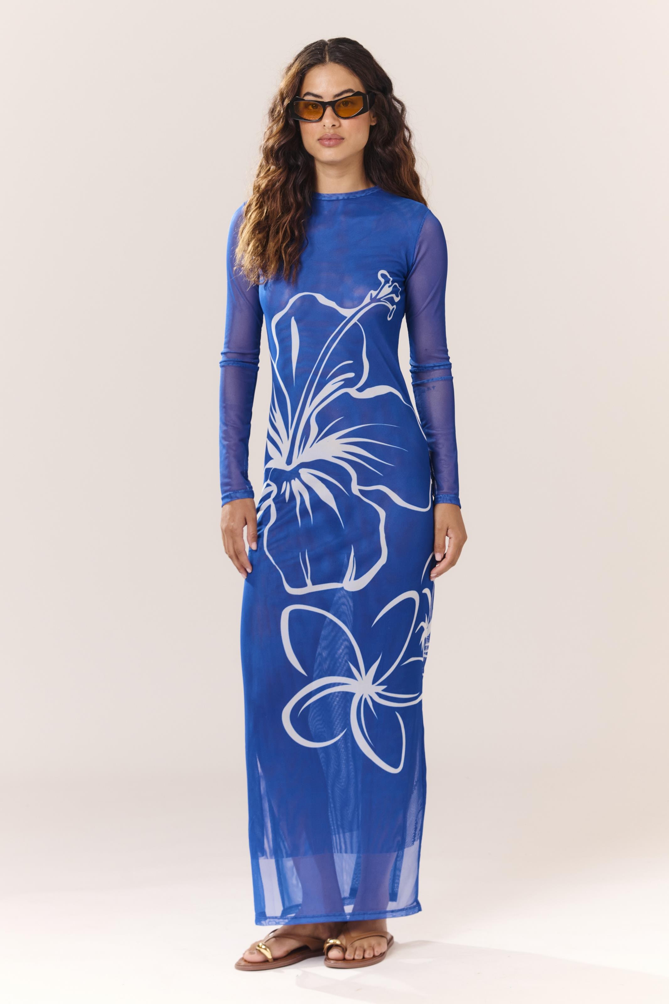Vestido Tule Manga Longa Luau